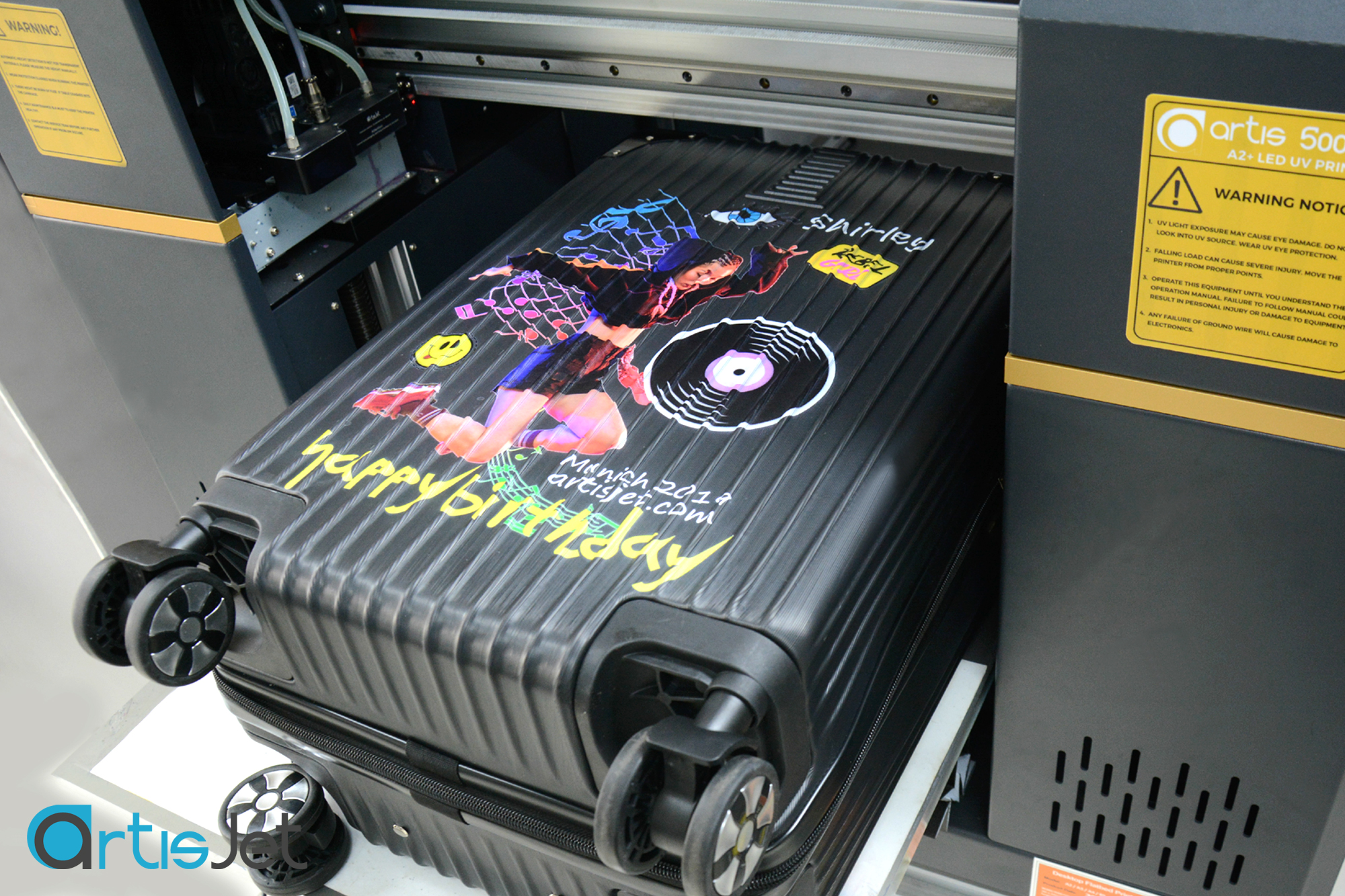 La impresora Artis 5000U es la hermana mayor de la marca Artisjet, cuenta con un área impresión de 50 x 70 cm y altura máxima de impresión de 25 cm, gran formato con calidad fotográfica a todo detalle relieves y texturas. Capaz de imprimir sobre maletas de mano, trofeos, chapa, cristal, metacrilato, madera, etc… Mas info.